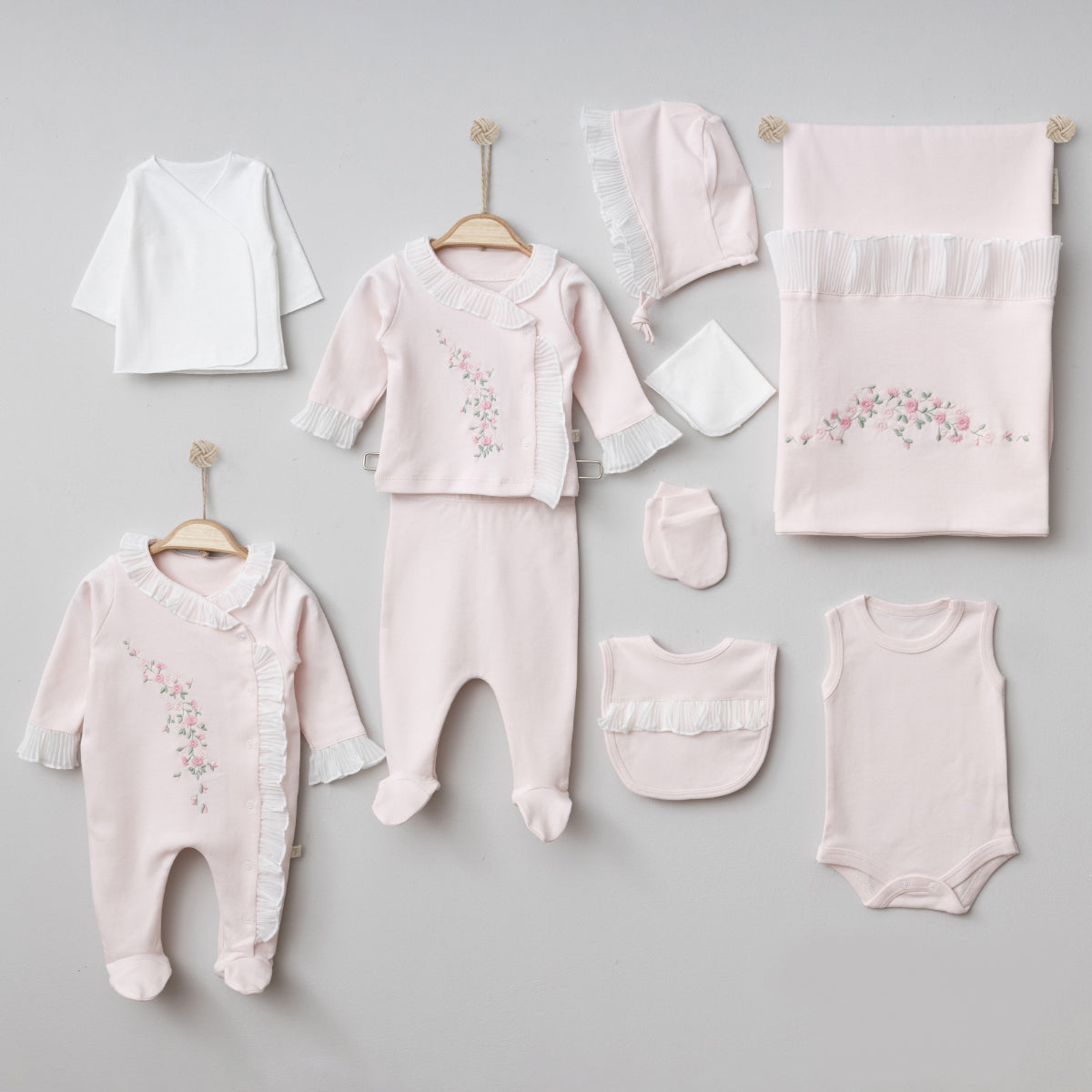 10-teiliges Erstlingsset für Mädchen | Zartrosa | Weich & liebevoll bestickt