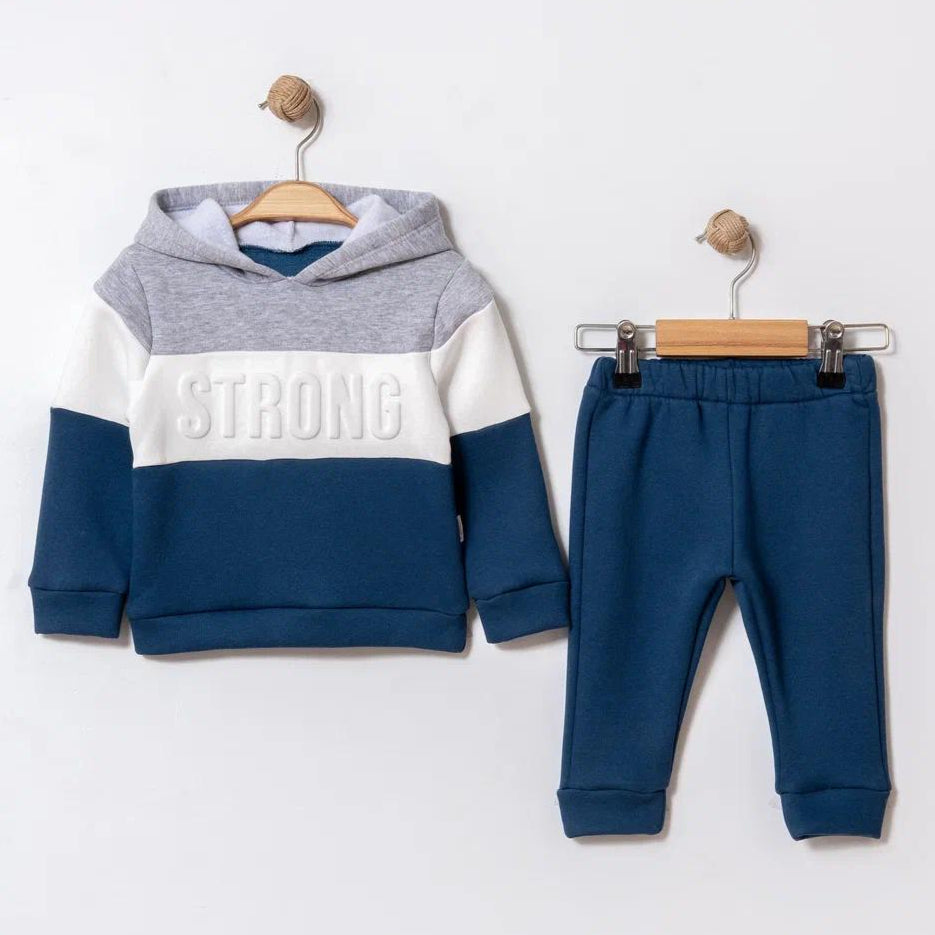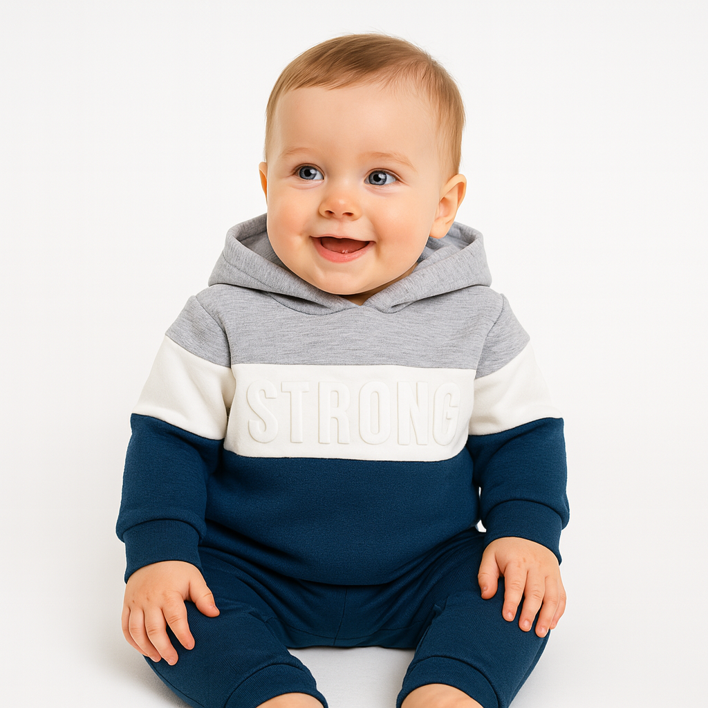 2-teiliges Baby Jungen Jogginganzug Set – „STRONG“ Hoodie & Hose, in 2 Farben