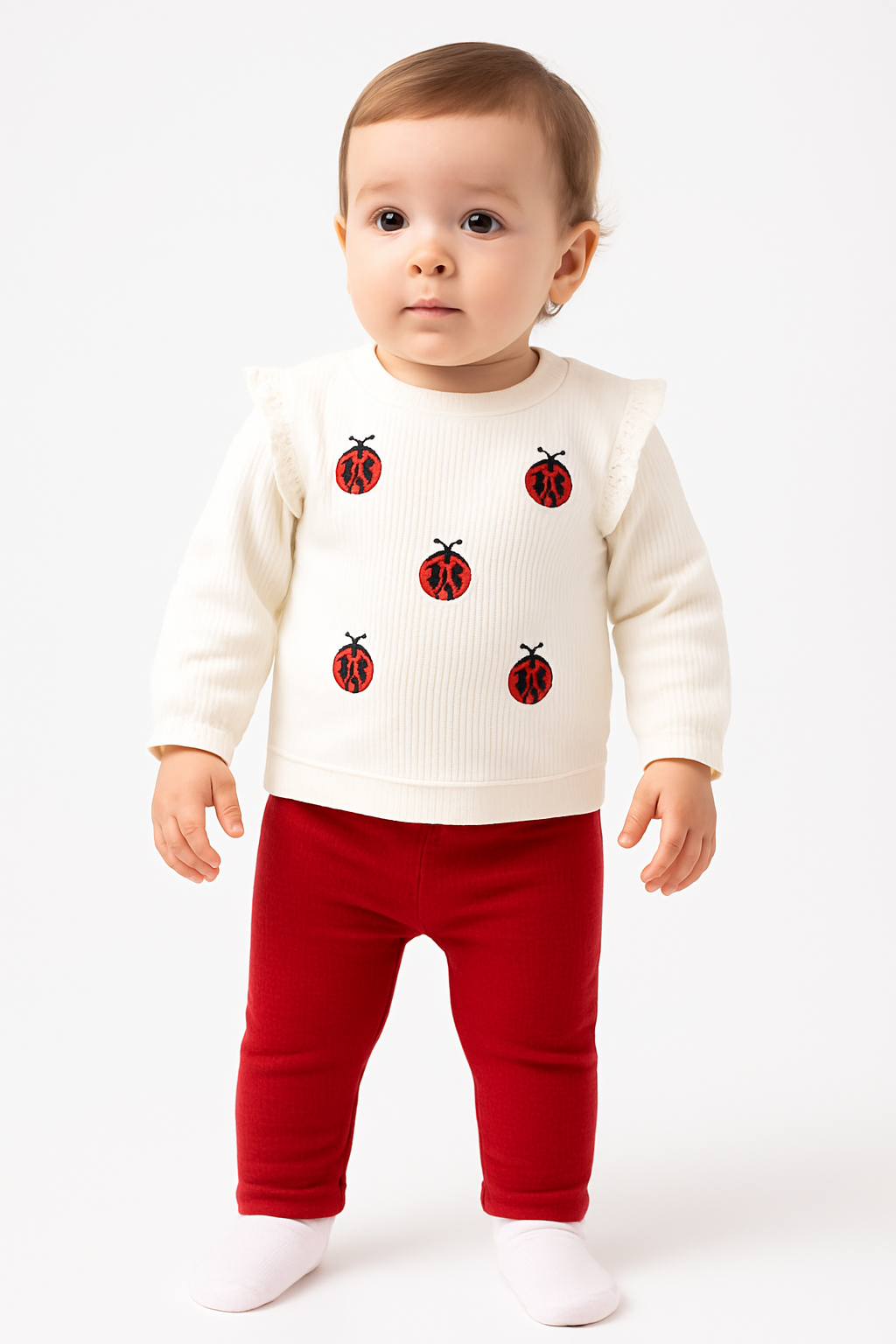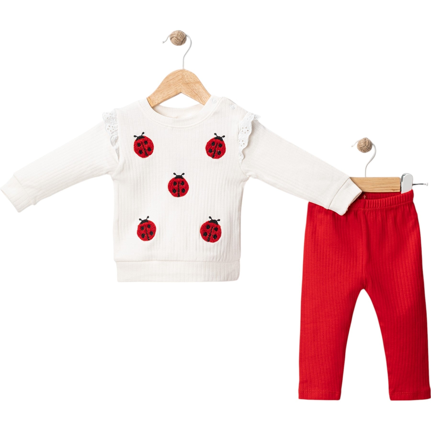 2-teiliges Baby Outfit – Langarmshirt mit Marienkäfer-Motiv & rote Hose