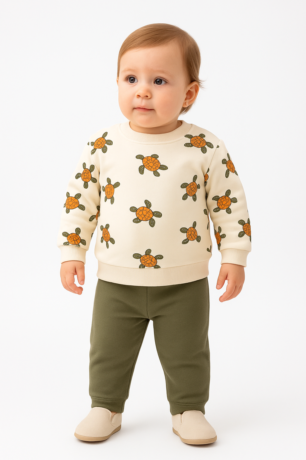Baby 2-teiliges Set – Langarm Sweatshirt mit Schildkröten-Print & Hose