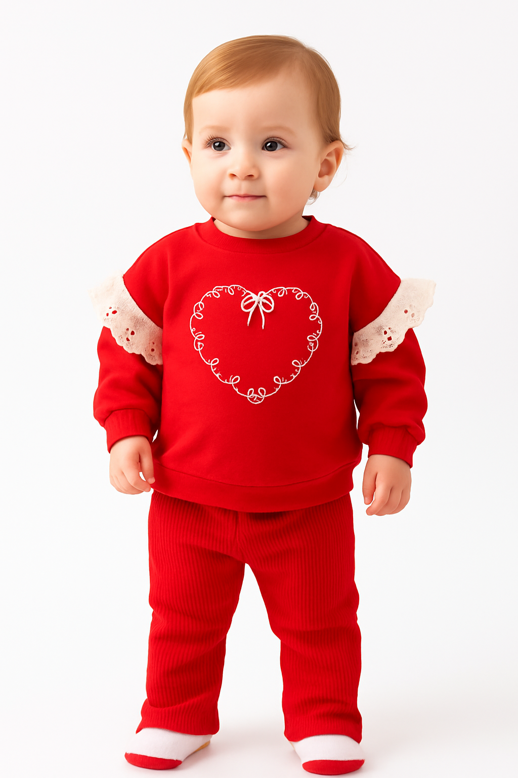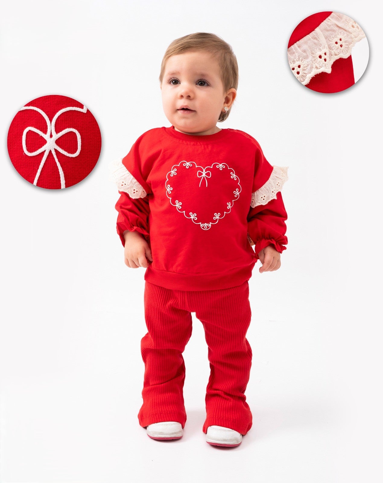 Baby 2-teiliges Set – Rotes Herz-Oberteil mit Spitze & Hose | 100% Baumwolle