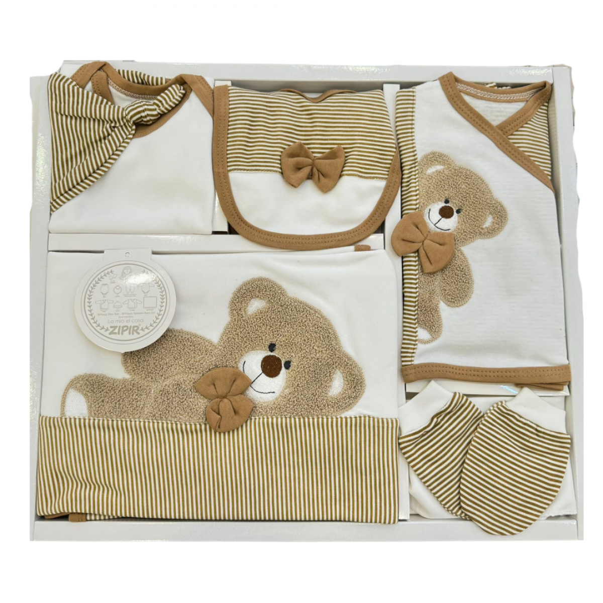 Baby-Erstlingsset 10-teilig – Braun/Weiß mit Bärchen-Motiv Gr. 50 / 56