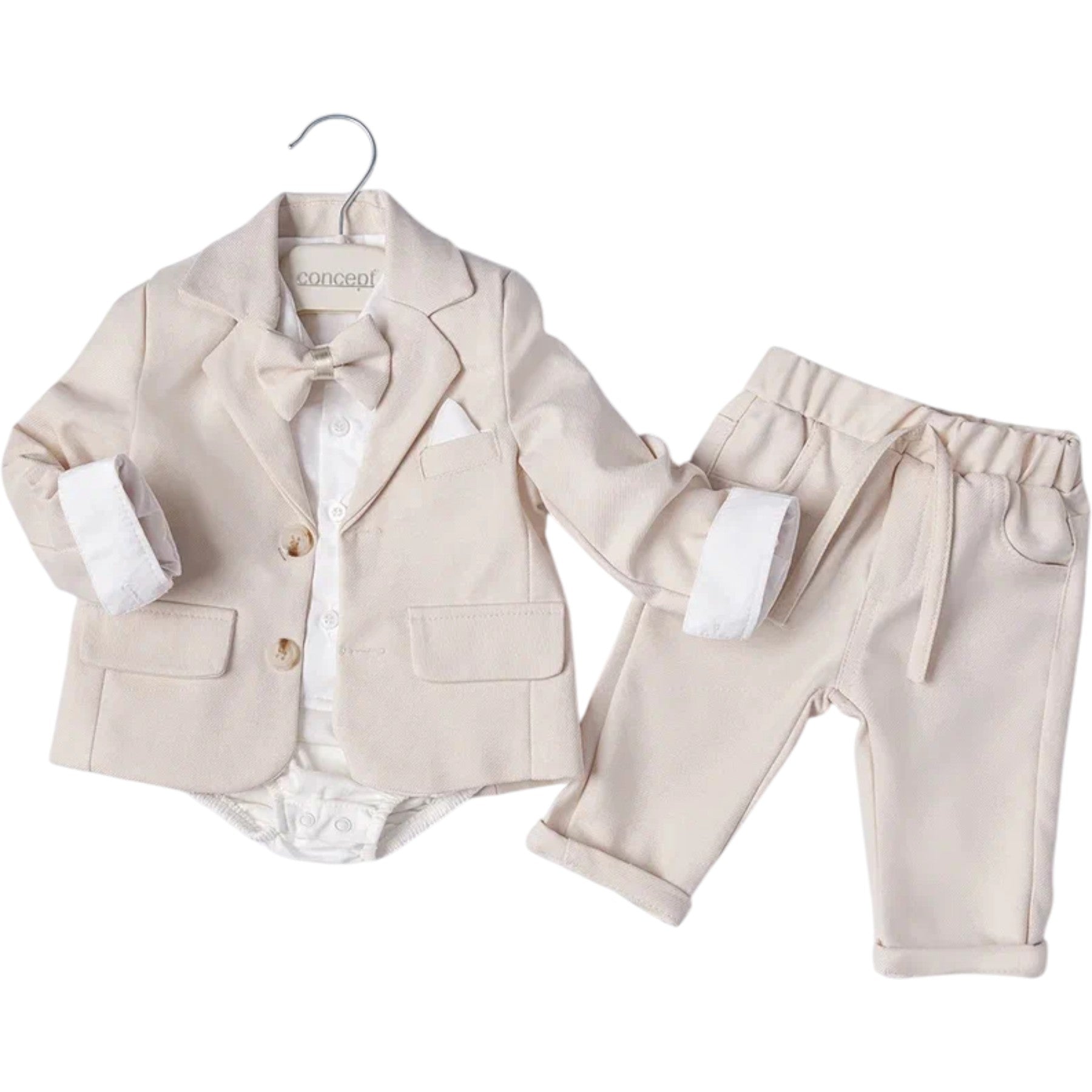 Baby Jungen Anzugsset – Bodyhemd, Sakko, Hose & Fliege