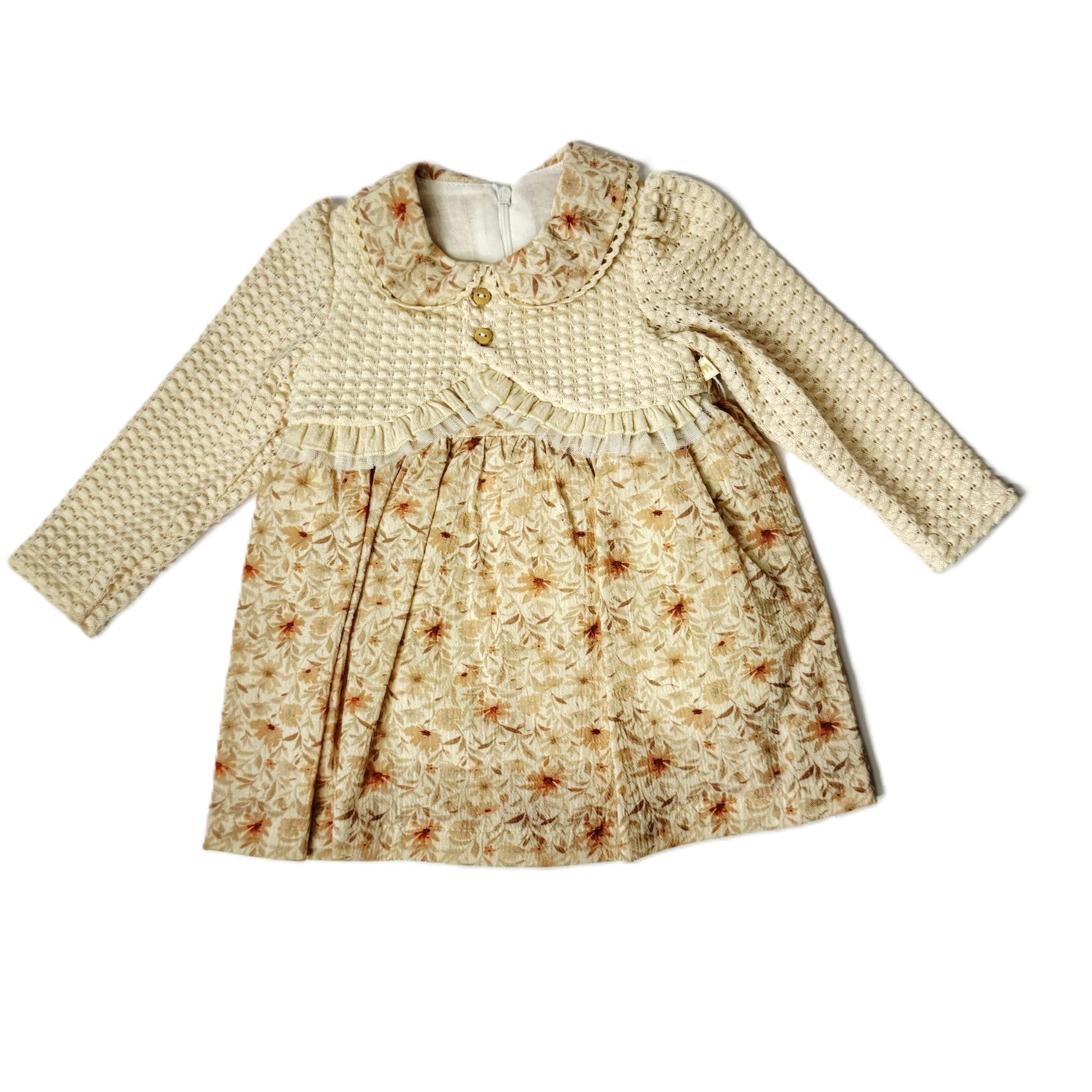 Baby Kleid mit Strickoberteil & Blümchenrock – Langarm in Beige