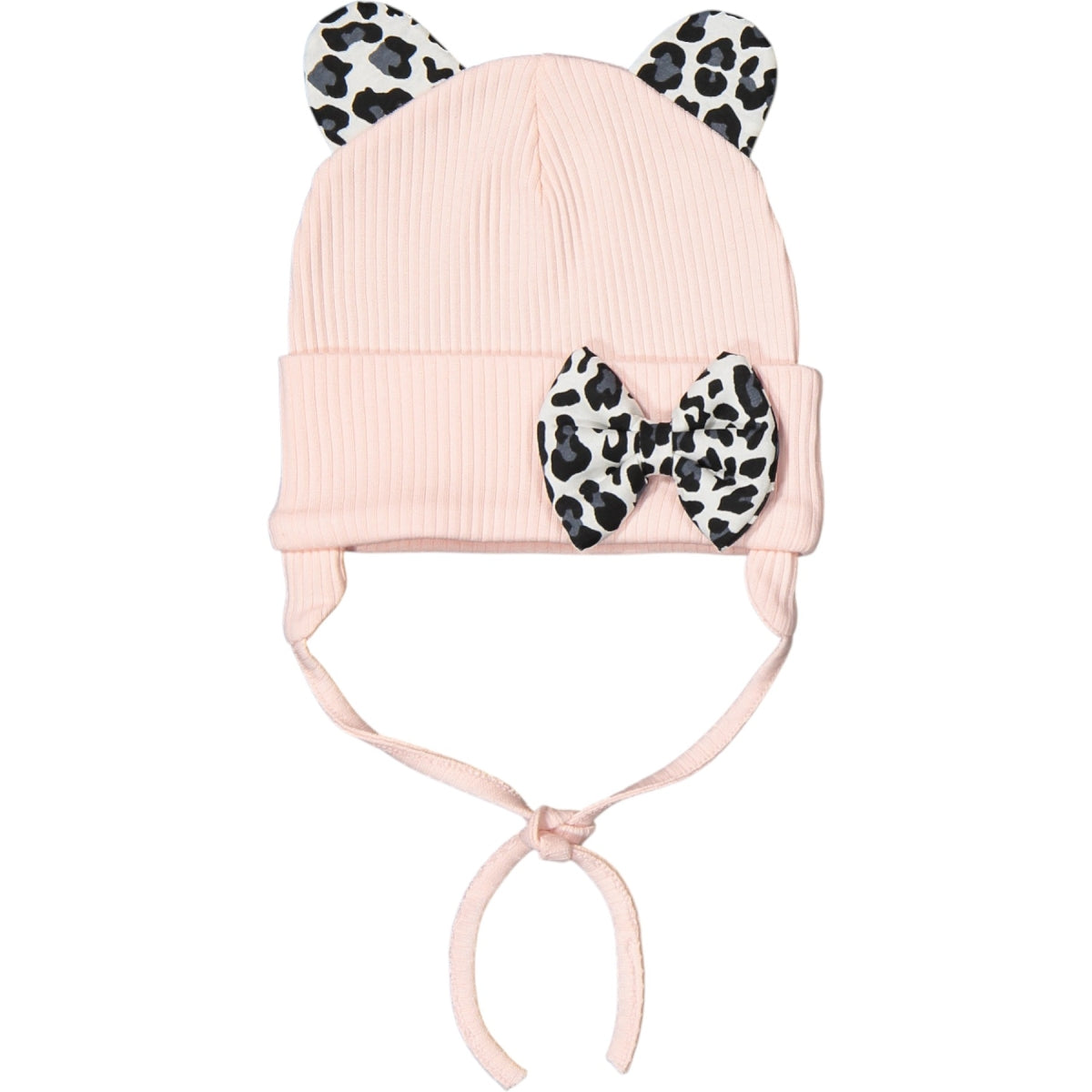 Baby Mütze mit Ohren & Schleife – 4 Farben, Leoparden-Details