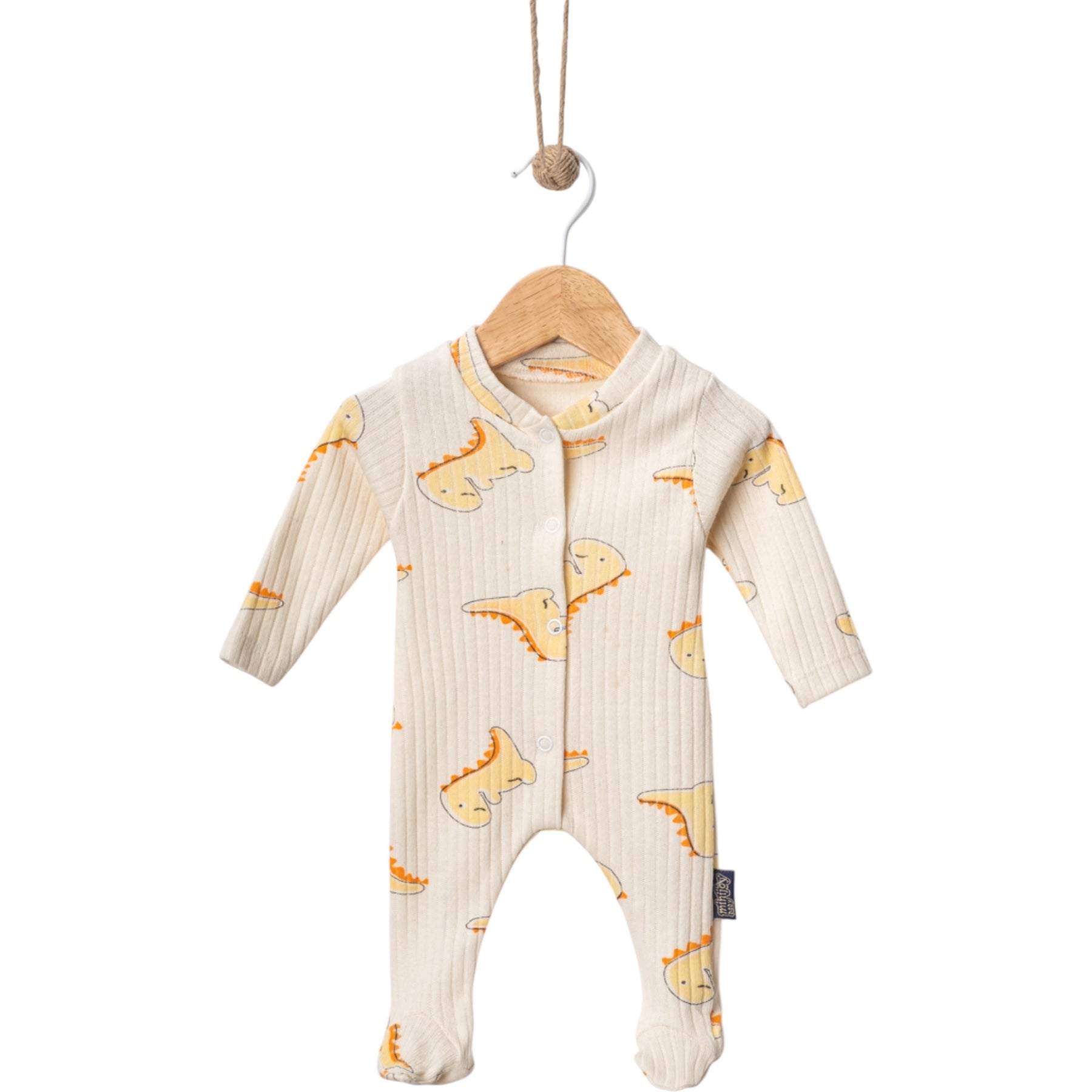 Baby Strampler mit Dinosaurier-Motiv – Cremefarben, Langarm, Baumwolle, mit Fußteil