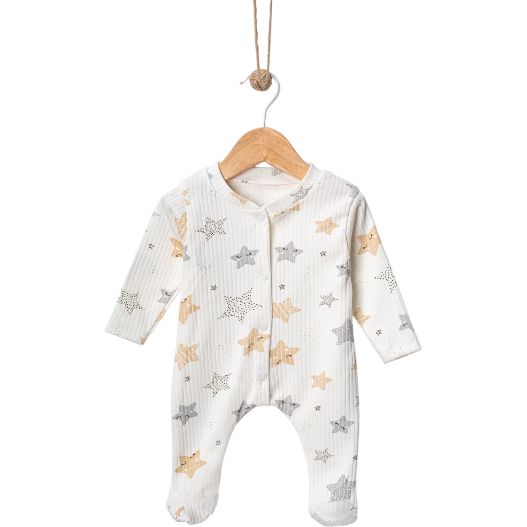 Baby Strampler mit Sternen – Langarm, Baumwolle, Fußteil, cremefarben