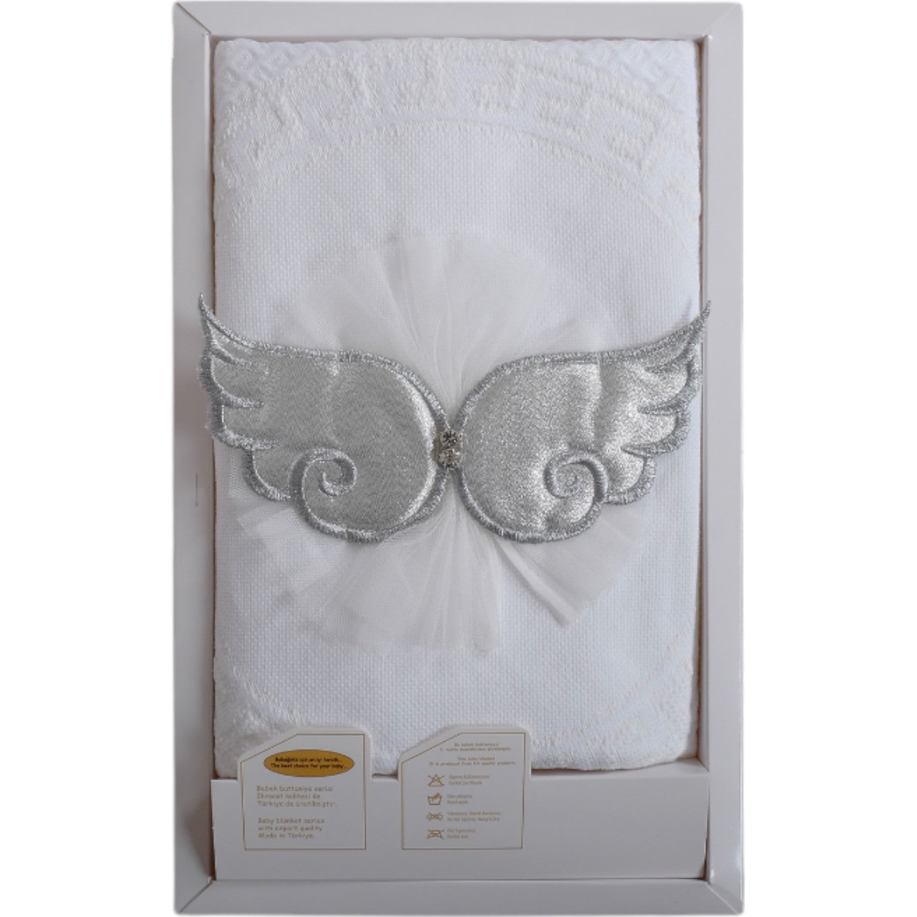 Babydecke mit Engelsflügel-Applikation – in Rosa, Hellblau & Silber erhältlich