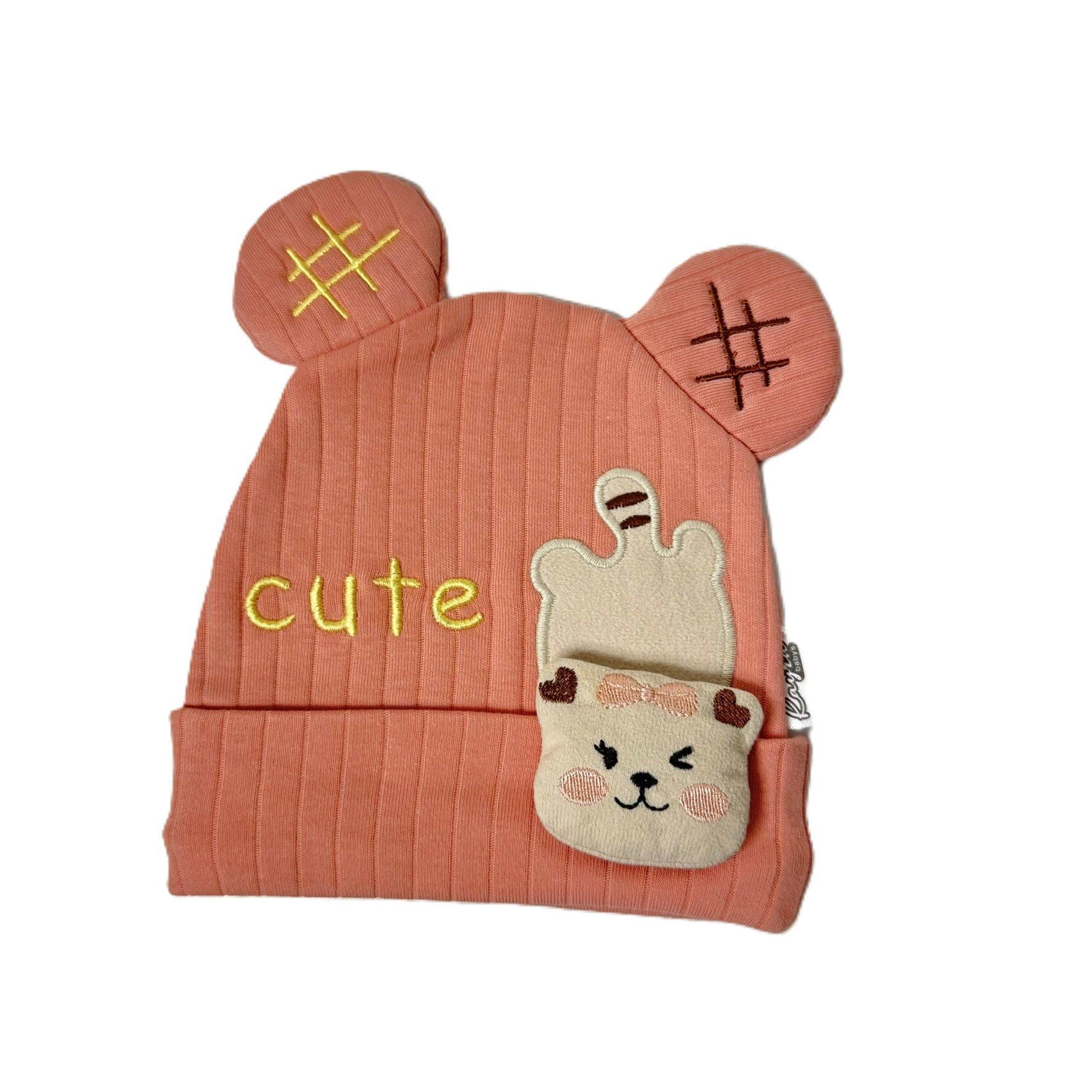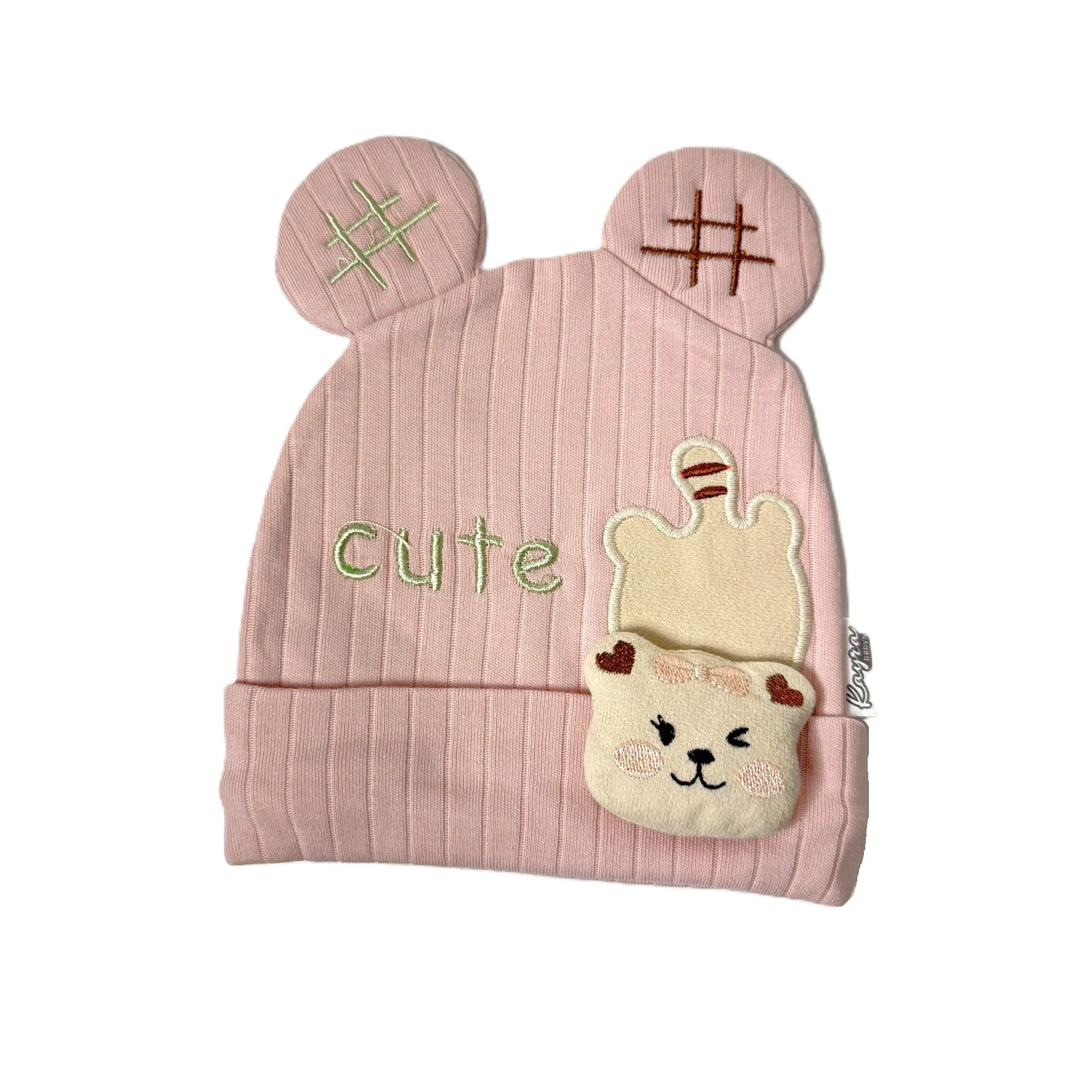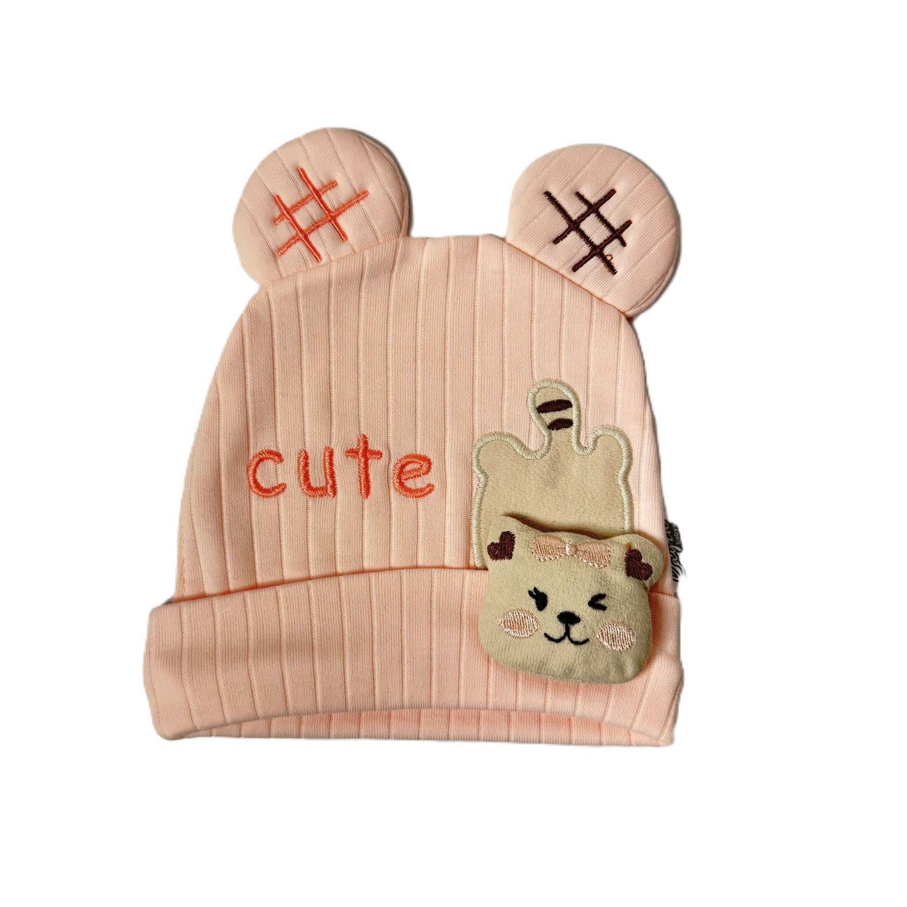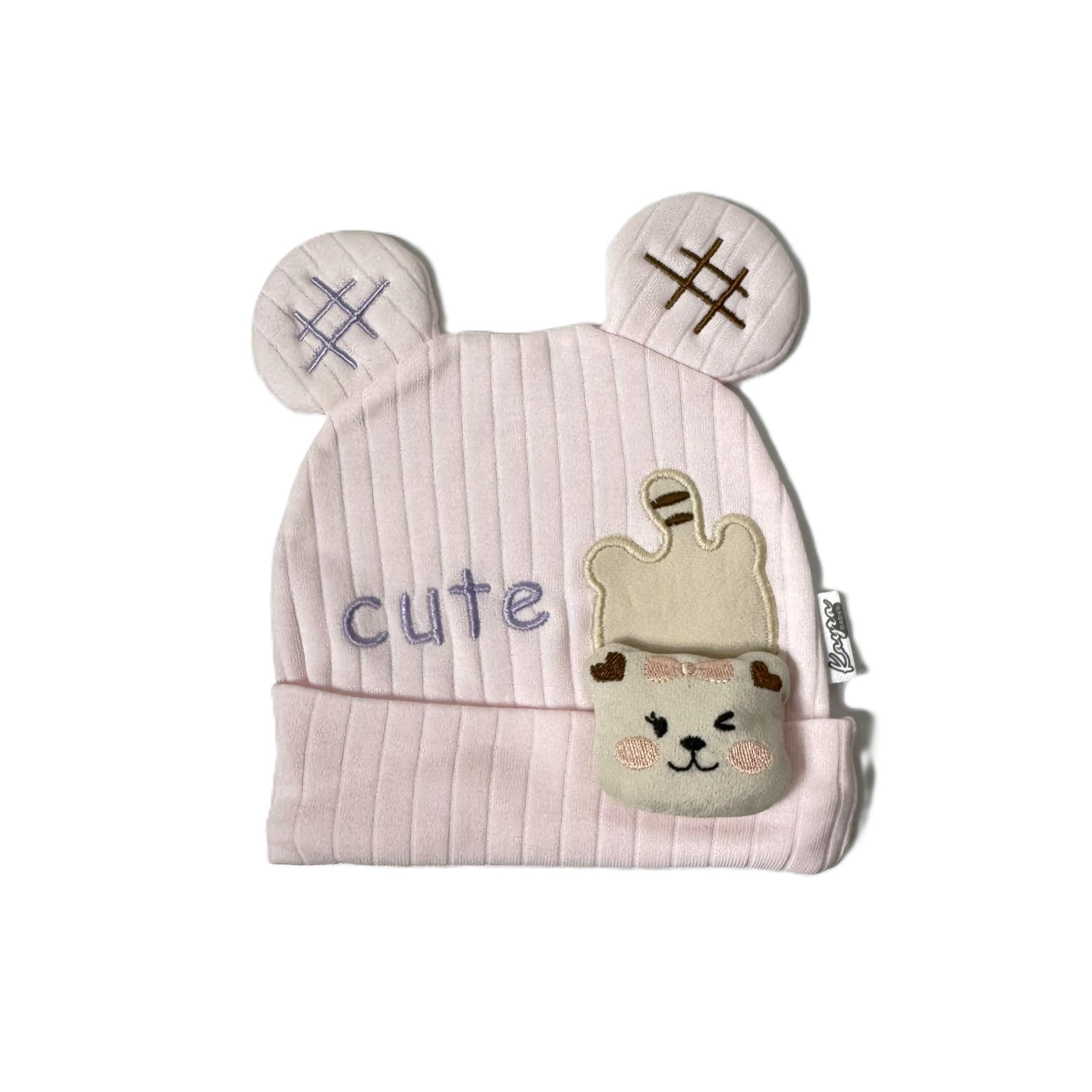Babymütze mit Ohren & Bärchen-Applikation – 5 Farben erhältlich