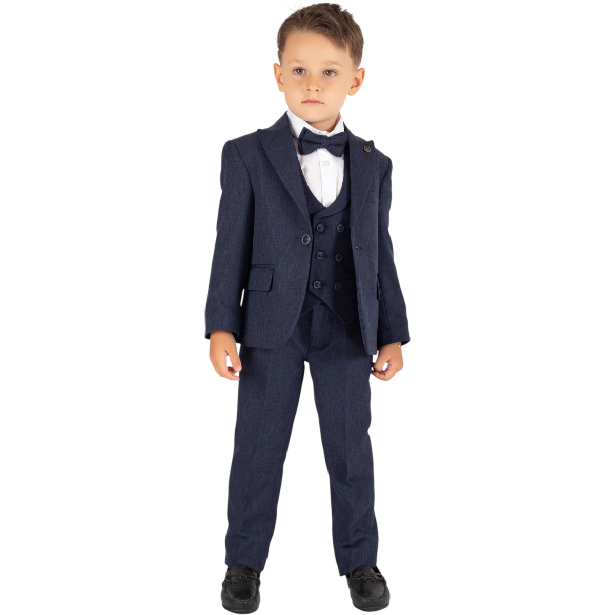 Fünfteiliges Jungen-Anzugset in Grau oder Dunkelblau mit Sakko, Weste, Hose, Hemd & Fliege