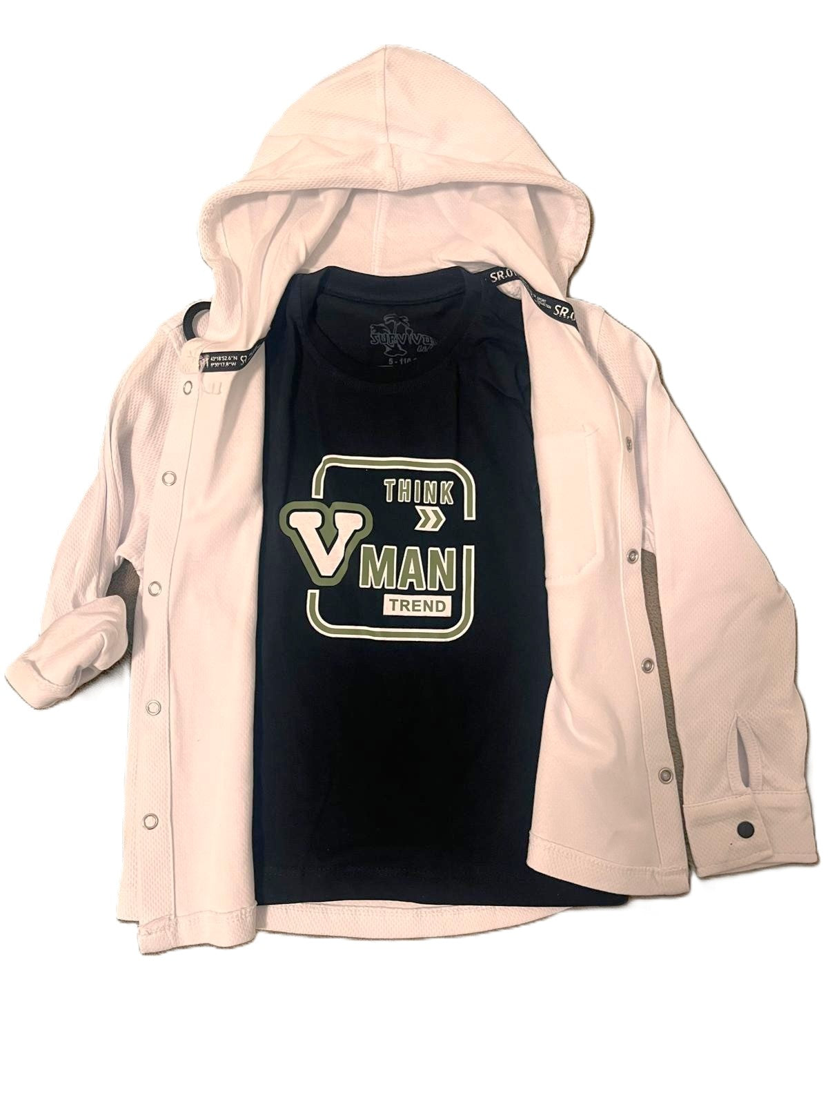Jungen Set – Schwarzes T-Shirt & weißes Kapuzenhemd