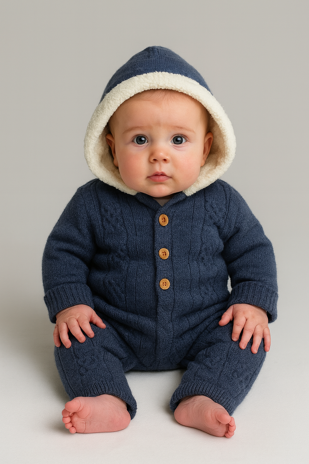 Ein zeitloser Strick Overall, der dein Baby warm und geborgen hält. Perfekt für Wintertage und kuschelige Stunden zuhause.
