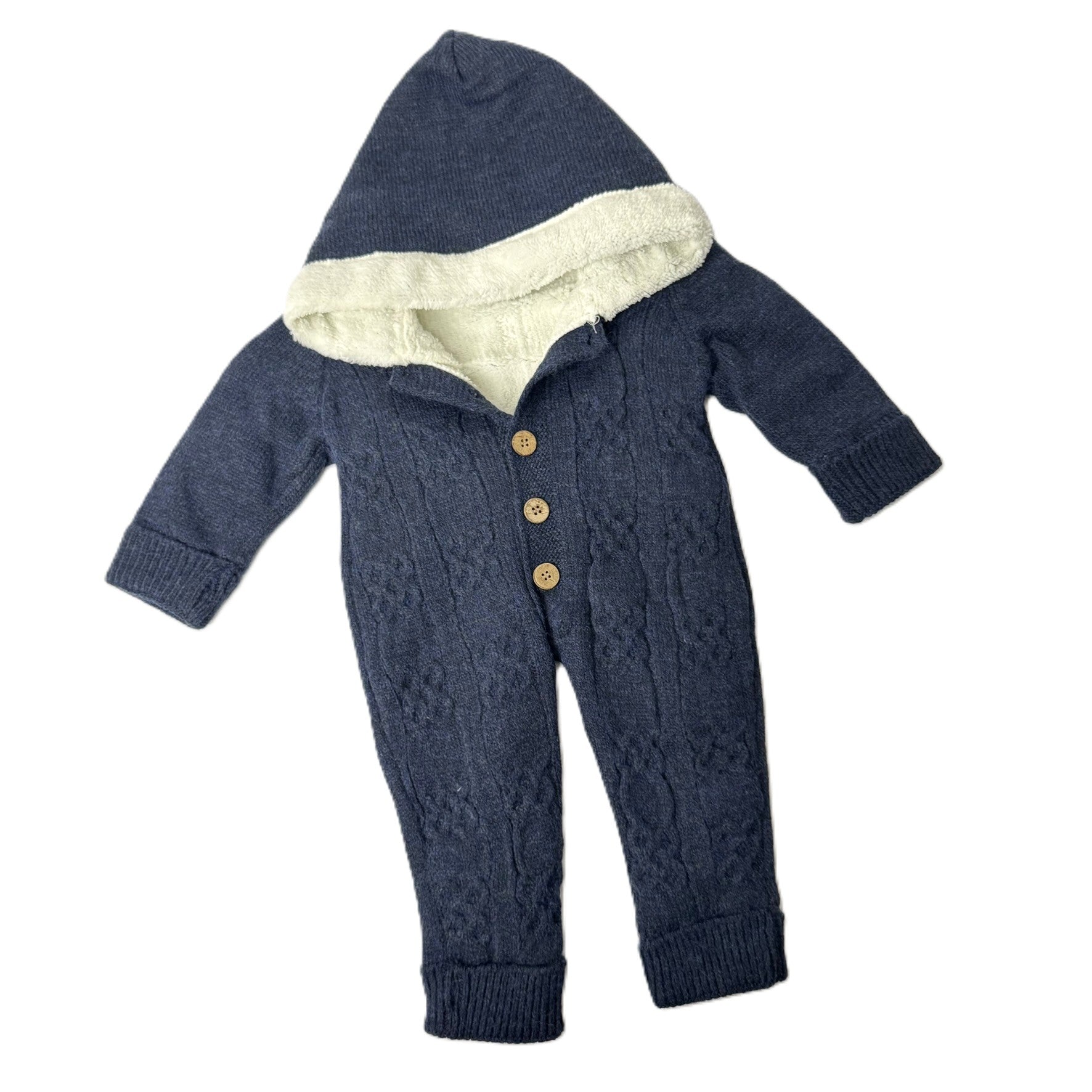 Strick Overall mit Kapuze – Warm gefüttert in Dunkelblau